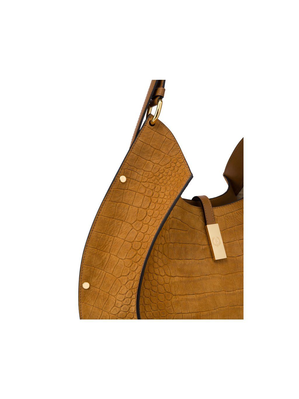 Elegantná kabelka značky Pollini je stelesnením sofistikovaného štýlu a precízneho spracovania. Jemná štruktúrovaná textúra s efektom krokodílej kože dodáva modelu luxusný charakter, zatiaľ čo oblý tvar pôsobí moderne a žensky. Zlaté kovové detaily krásne podčiarkujú exkluzívny dizajn.